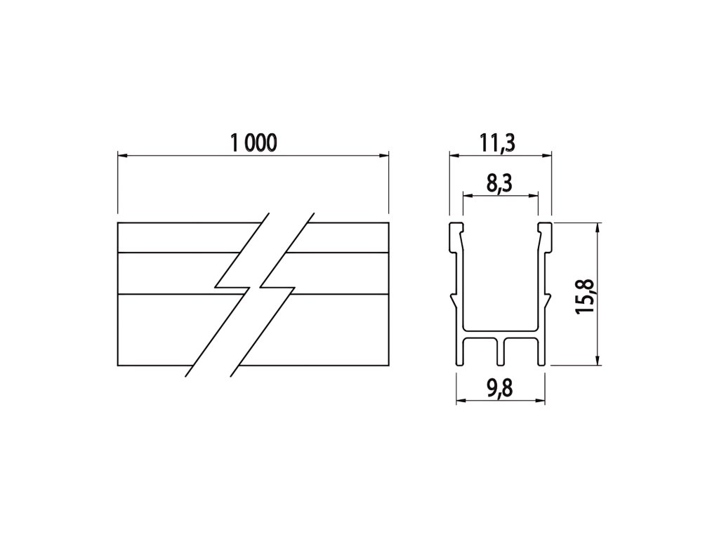 Adaptér je vyrobený z hliníku a dodávaný v délce 1000 mm.