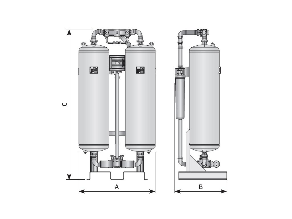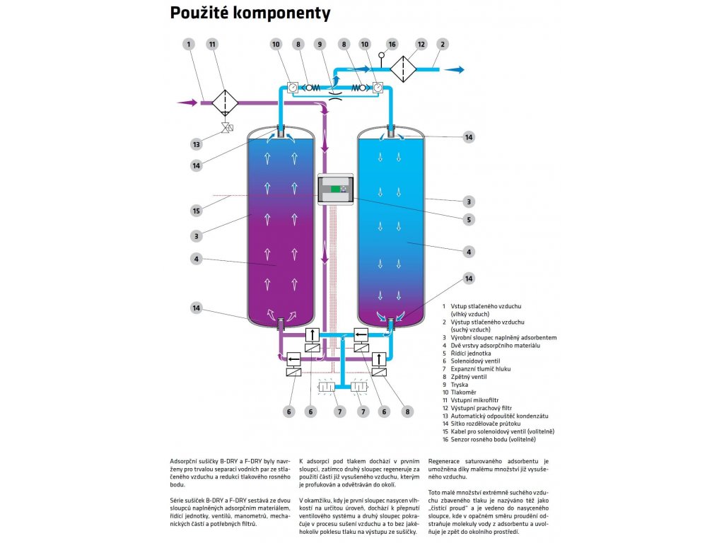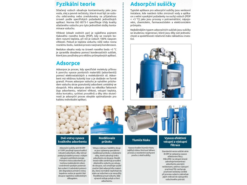 - adsorpční sušičky pro perfektní odstranění vlhkosti ze stlačeného vzduchu