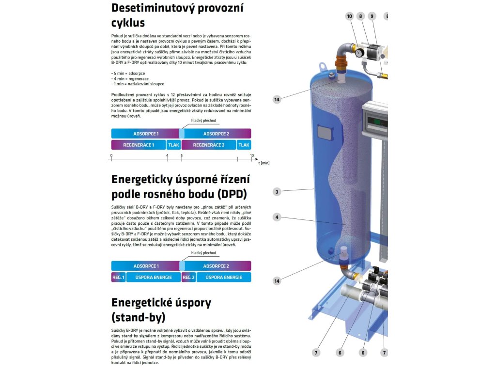 - důležité upozornění: adsorpční sušičky potřebují pro svůj provoz až 20 % dodávaného množství vzduchu