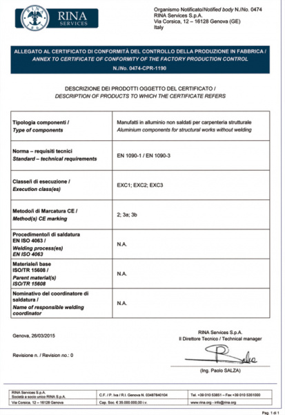 DŮLEŽITÉ: Norma EN 1090 je povinná pro dodavatele hliníkových konstrukcí. To znamená, že testování struktur, které nevykazují shodu s touto normou, je zakázáno. Tuto certifikaci vyžaduje evropská směrnice.