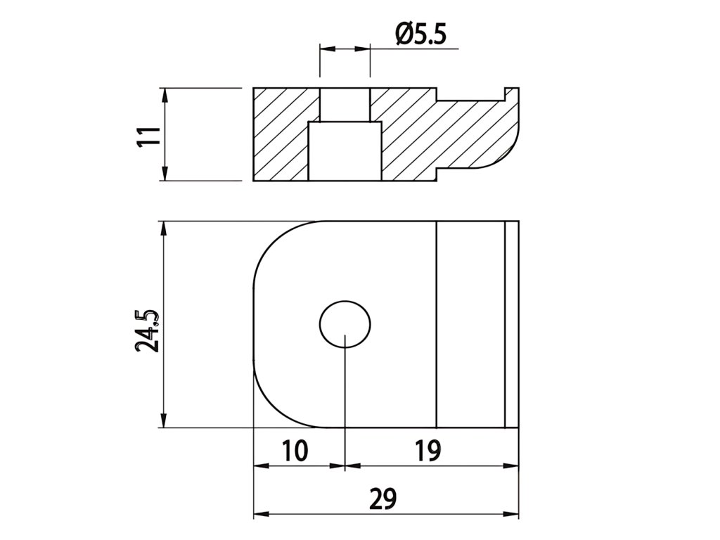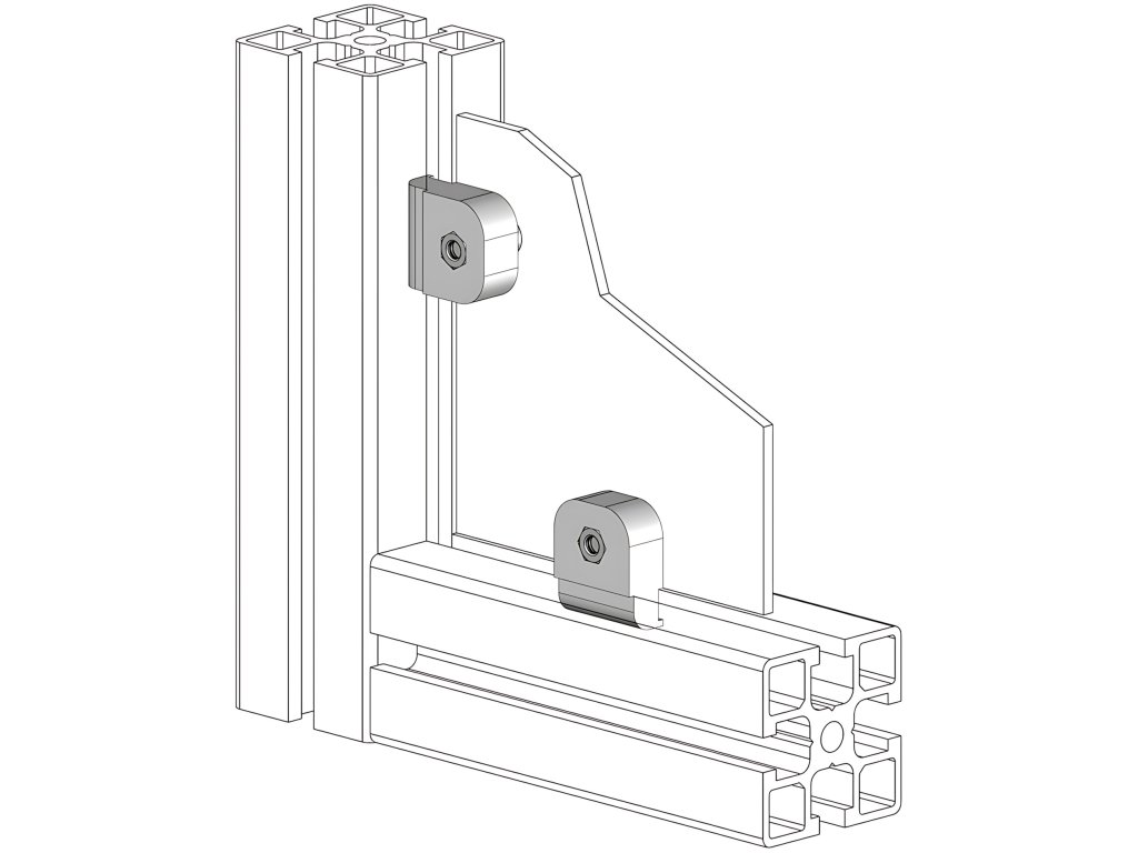 Blok pro fixaci panelu s tloušťkou 1 až 5 mm ke středové drážce profilu série AC 45-8.