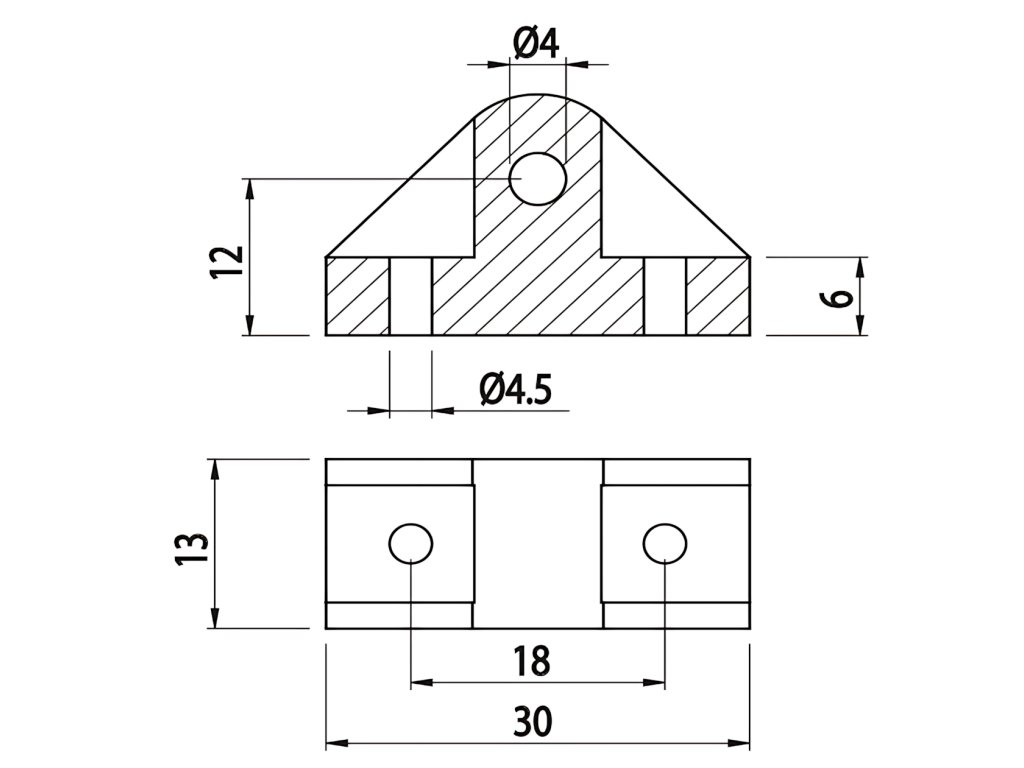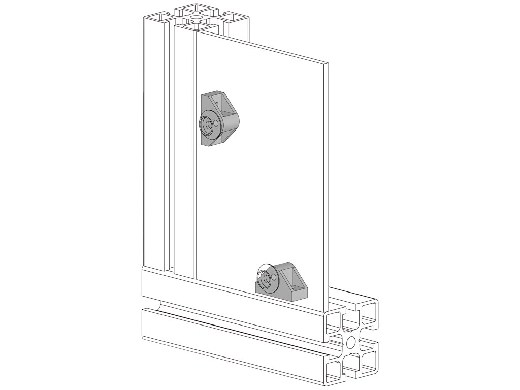 Připevnění bloku k profilu a skleněnému panelu pomocí šroubů M4.