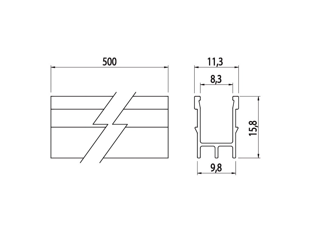 Reduzieradapter für die Installation von LED-Leuchten der HT-Serie mit einer Länge von 500 mm in Profile mit Nuten BH 45-10 und BH 50-10.
