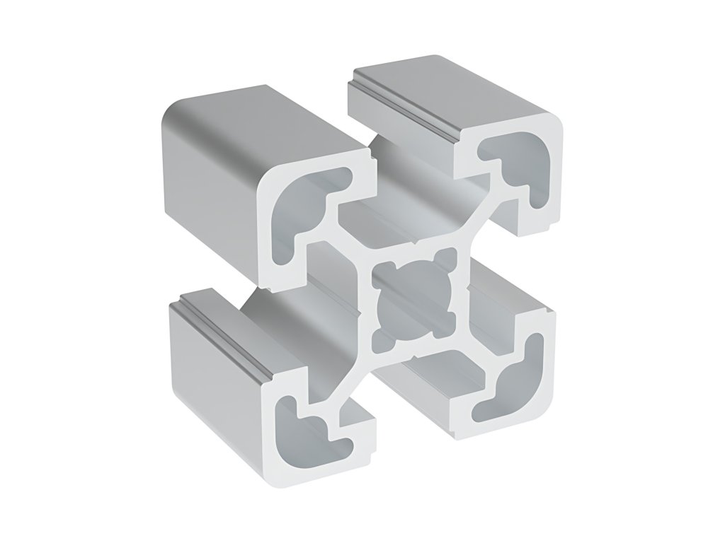 Aluminiumprofil mit quadratischem Querschnitt zur Herstellung von Standardstrukturen.