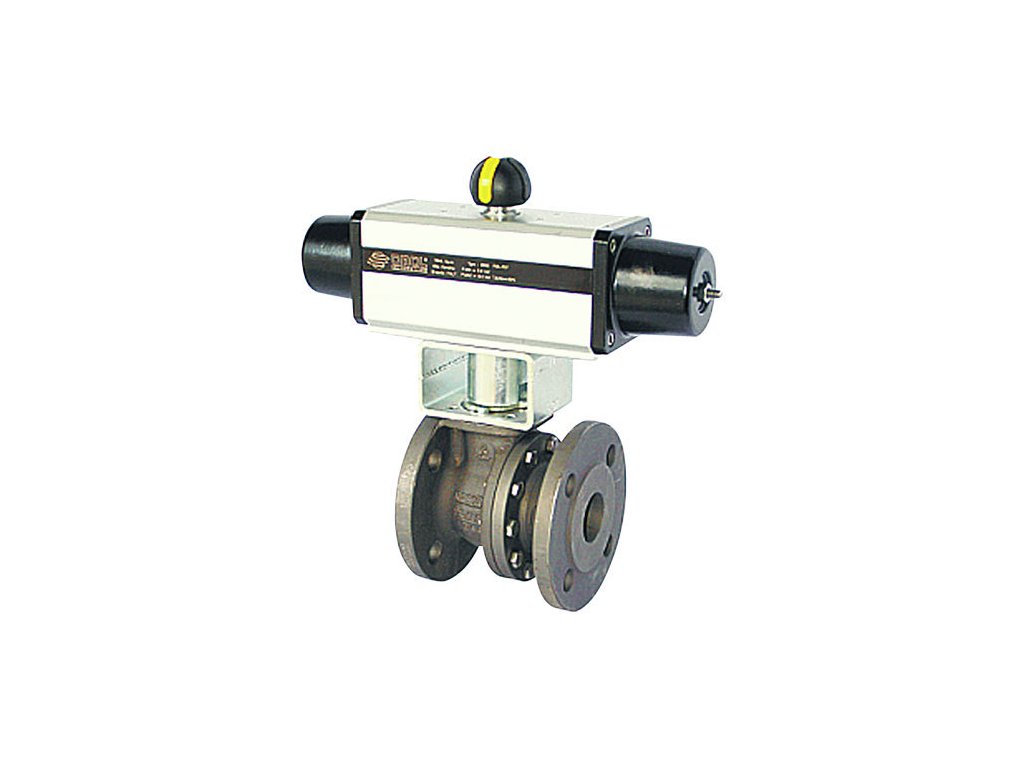 - System aus Flanschkugelhahn 02TTT und pneumatischem Antrieb OMAL Typ DA