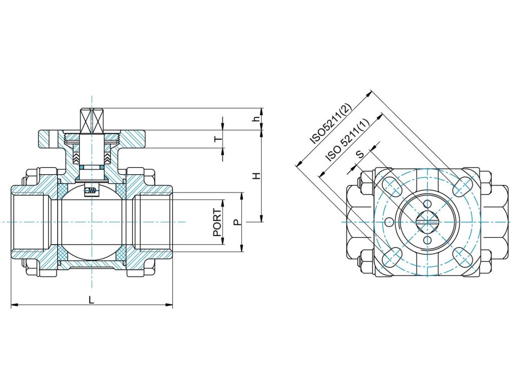 - 3-teilige Ausführung, mit Flansch für die Automatisierung nach ISO 5211