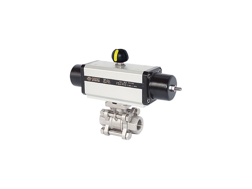 - Baugruppe aus 3-teiligem Edelstahl-Kugelhahn und pneumatischem Antrieb OMAL mit einfachwirkender Ausführung