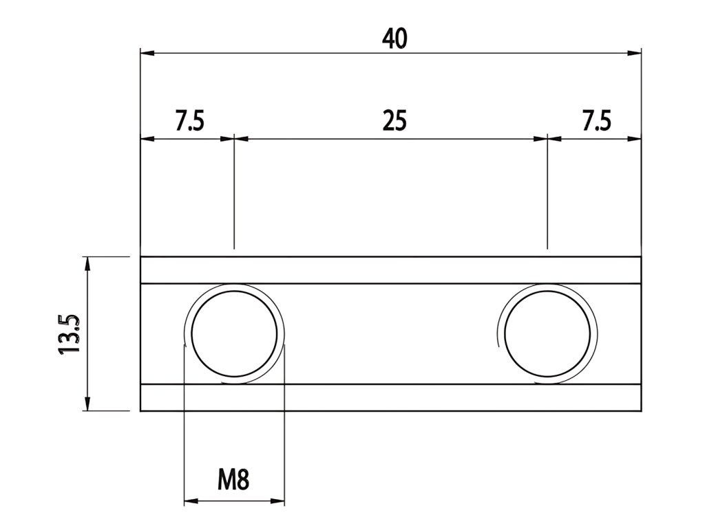Dlouhá matice 2x M8, do drážek AC 40-8, AC 45-8, délka 40 mm, nerezová ocel