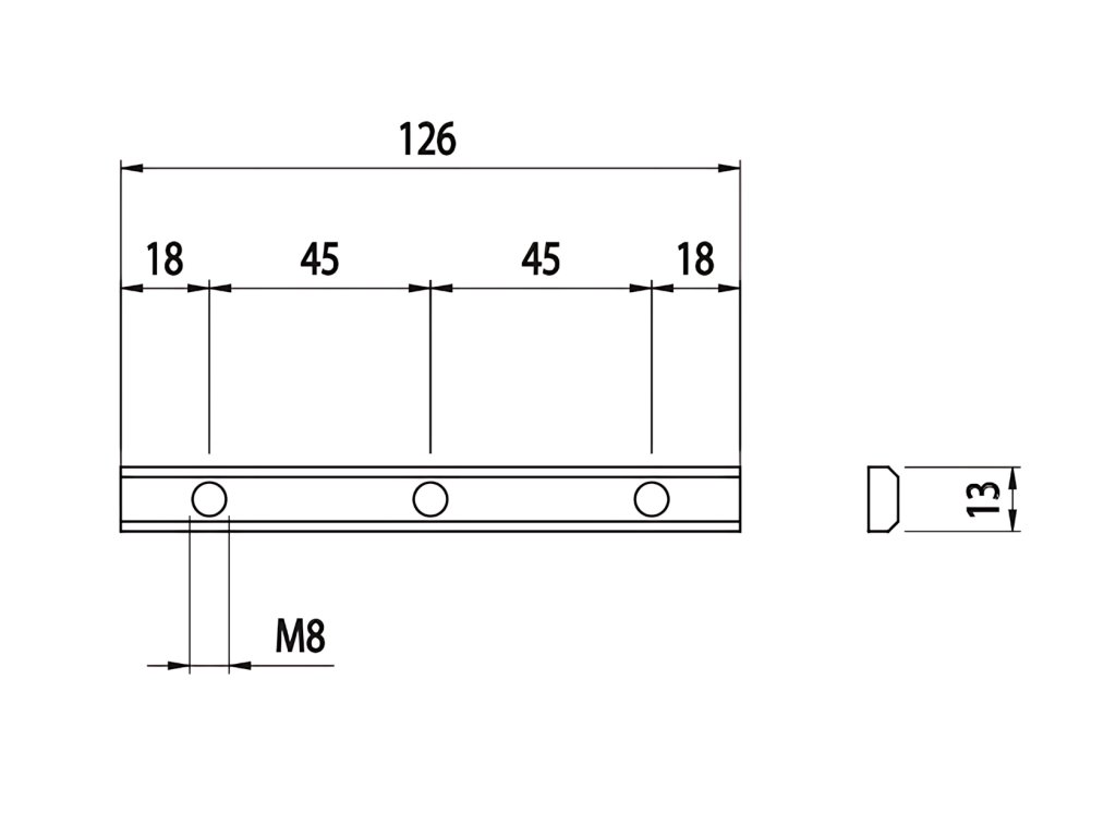 Dlouhá matice 3x M8, do drážek AC 40-8, AC 45-8, délka 126 mm