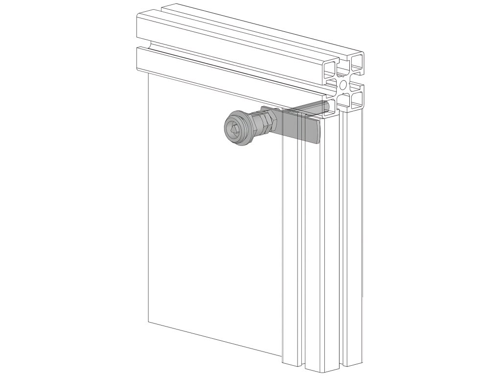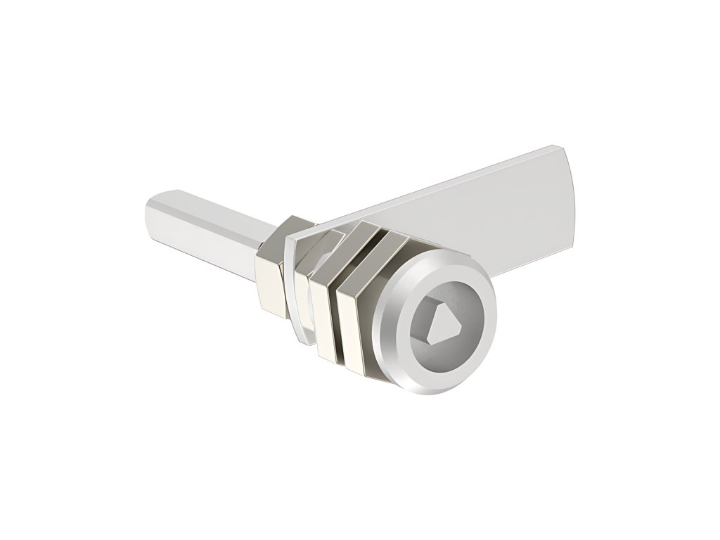 Otočný zámek na trojúhelníkovou kličku pro zajištění dvířek vytvořených z panelu nebo skla.