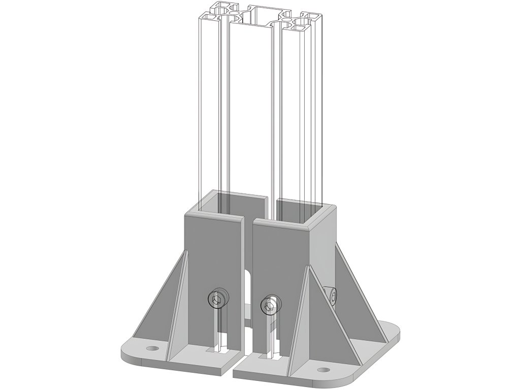 Dvojdílný podstavec určený pro montáž na profily s řezy 40x80 a 40x120.