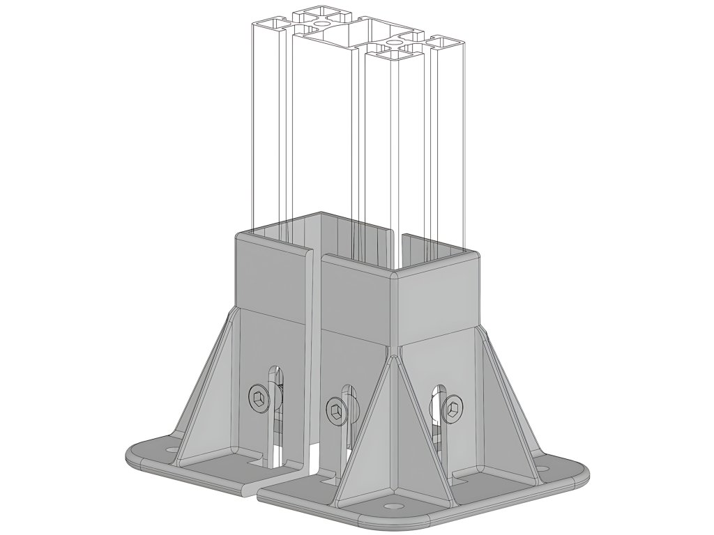 Dvojdílný podstavec určený pro montáž na profily s řezy 45x90, 45x135 a 45x180.