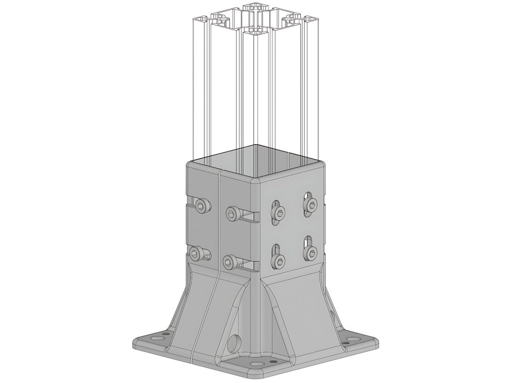 Dvojdílný podstavec určený pro montáž na profily s řezy 80x80, 80x120 a 80x160.