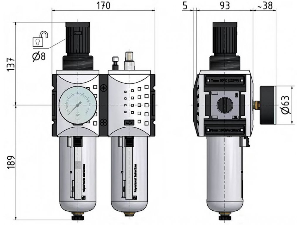 | Vessel volume: | Filter - 87 cm3, Oiler - 181 cm3 |