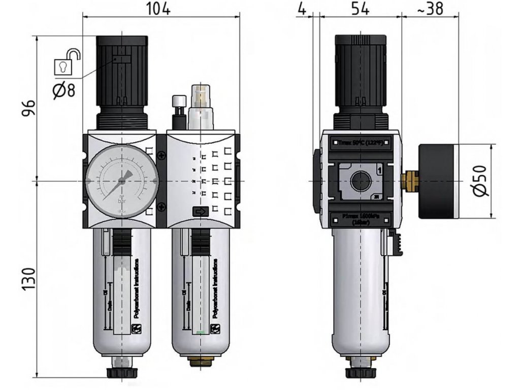 | Vessel volume: | Filter - 28 cm3, Oiler - 40 cm3 |