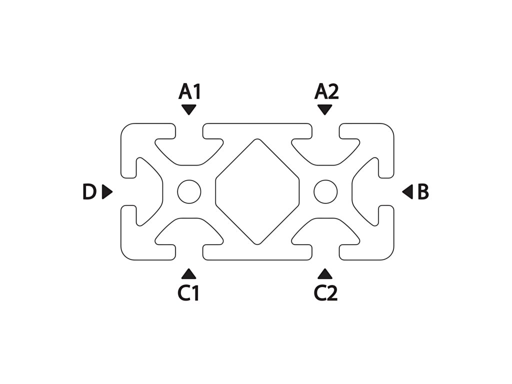 Universal connection options thanks to 6 grooves on all sides of the profile.