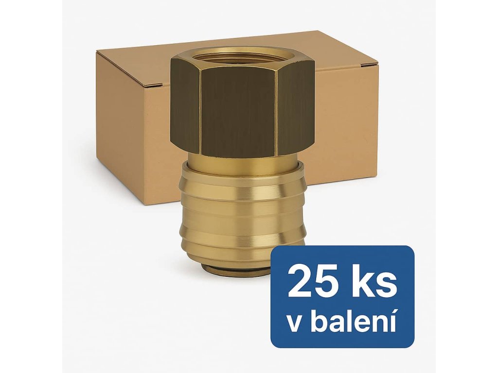 Female quick coupling ESX DN7,2 with 1/4" female pipe thread. Design in pure brass MS 58 equipped with one-way shut-off valve. Designed for compressed air in industry, crafts. Can also be used for water and other media. Maximum air flow 1 100 l/min.