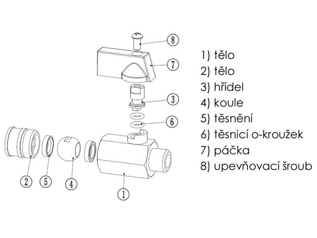 - Body - nickel-plated brass, lever - plastic, ball - chrome-plated brass and seal - PTFE