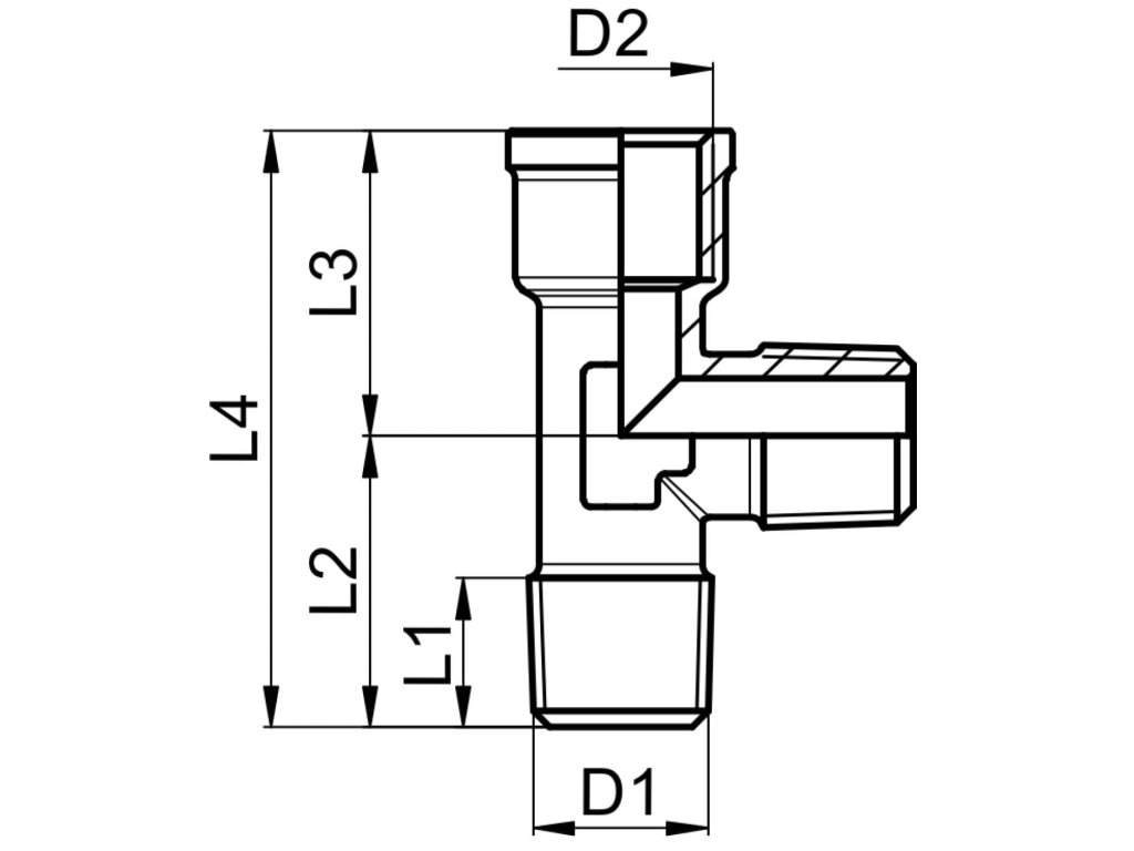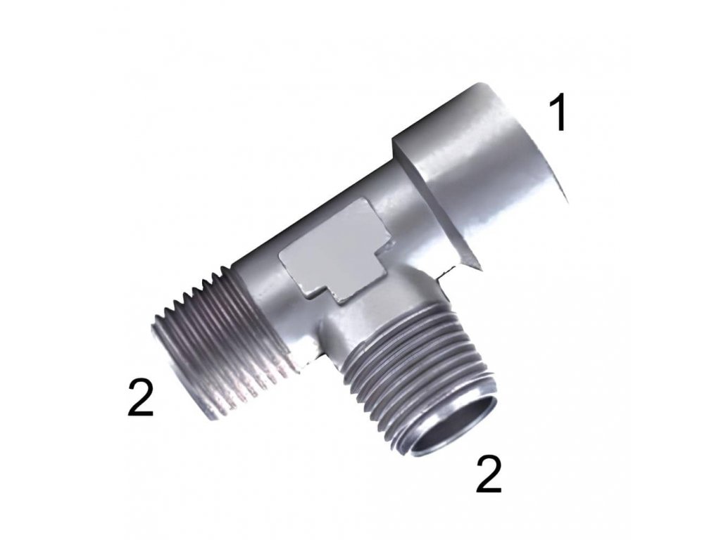 T-fittings with internal threads G1/2" and external R1/2", lengths 33 and 63. Version in brass with nickel-plated finish. Applications for fluid power, automation, measurement and control technology.