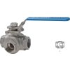 Stainless steel ball valves with internal threads G 1 1/2" in three-way lever operated design. T ball drilling. Designed for aggressive media especially in the chemical and food...