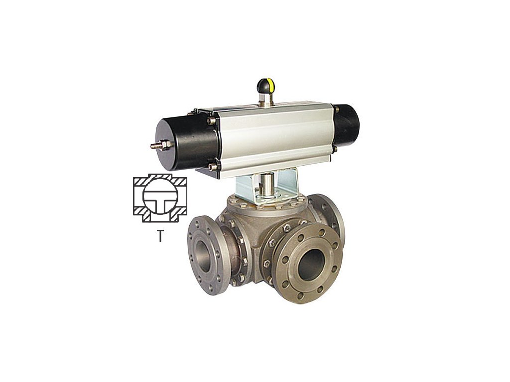 - three-way flanged ball valve Pekoss 84TTT and single-acting pneumatic actuator OMAL type SR