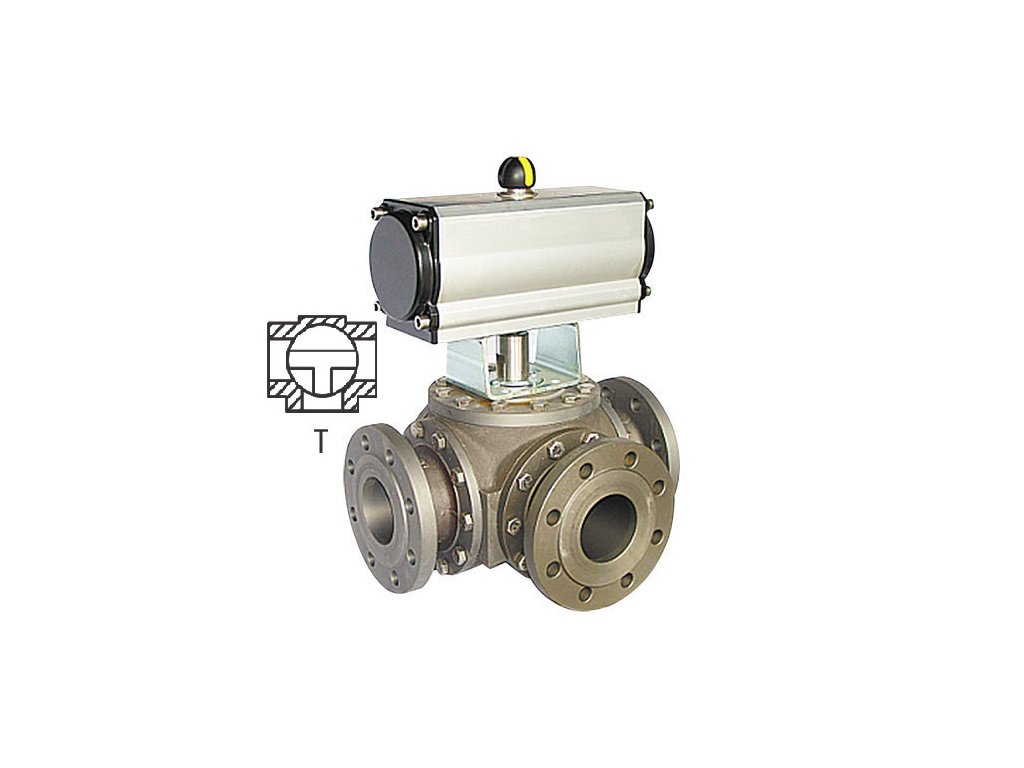 - three-way flanged ball valve Pekoss 84TTT and double-acting pneumatic actuator OMAL type DA
