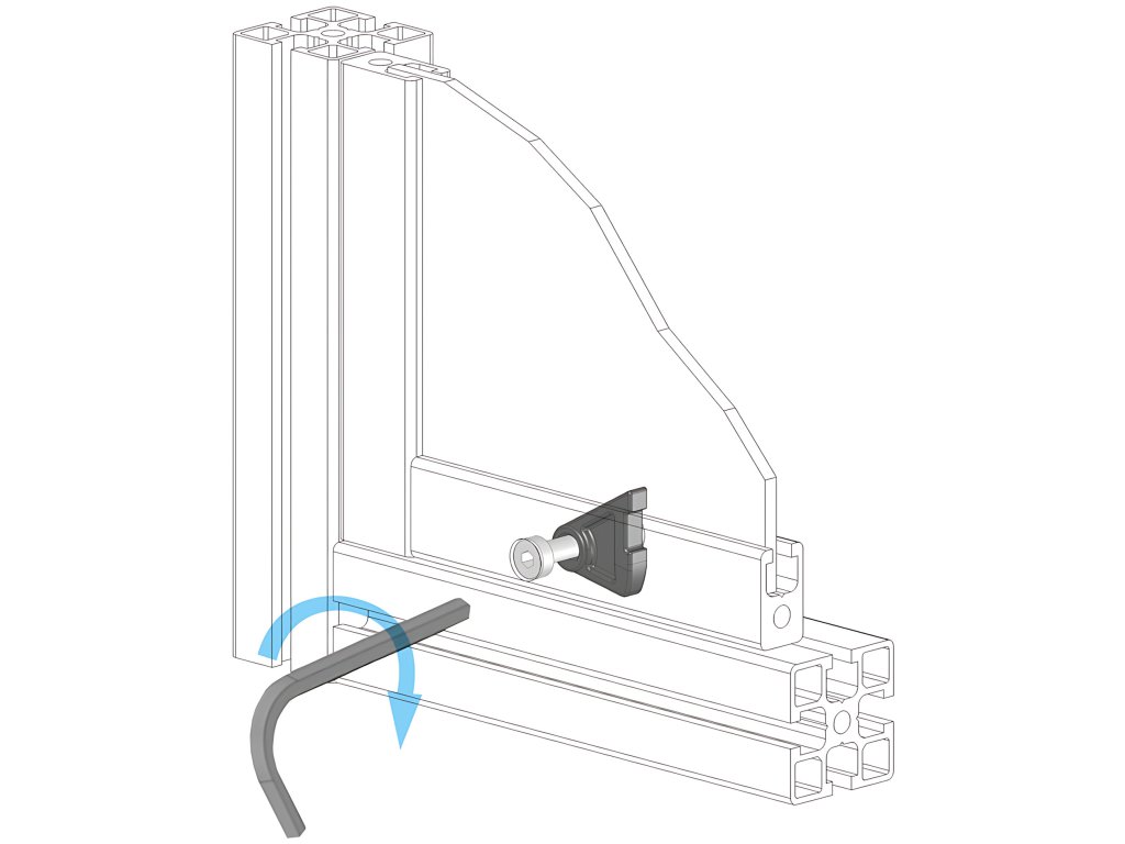 Dotažení panelu k bloku pomocí integrovaného imbusového šroubu.