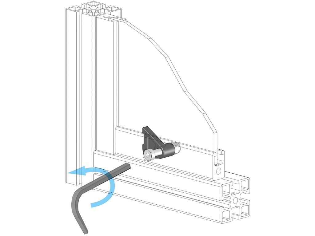 Dotažení panelu k bloku pomocí integrovaného imbusového šroubu.