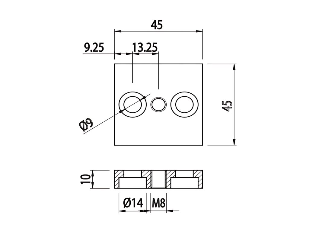 Fixační deska AC 45-8, 45x45, pro 2 profily 18,5x45