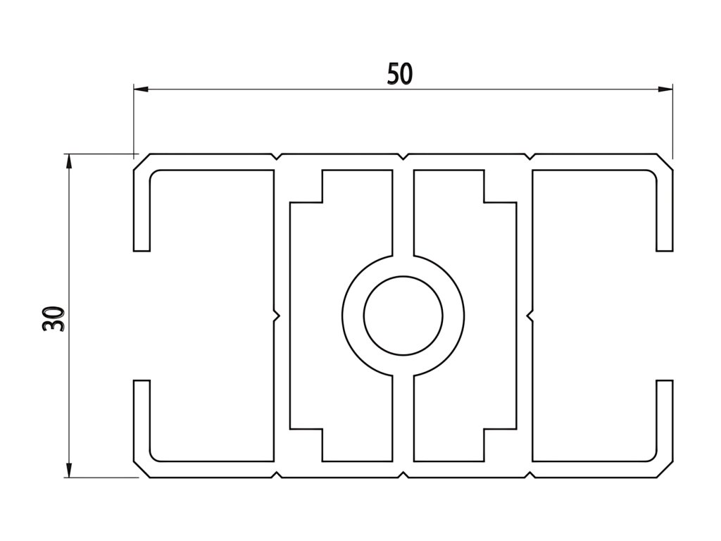 Hliníkový profil s řezem 30x50 pro vytváření oplocení.