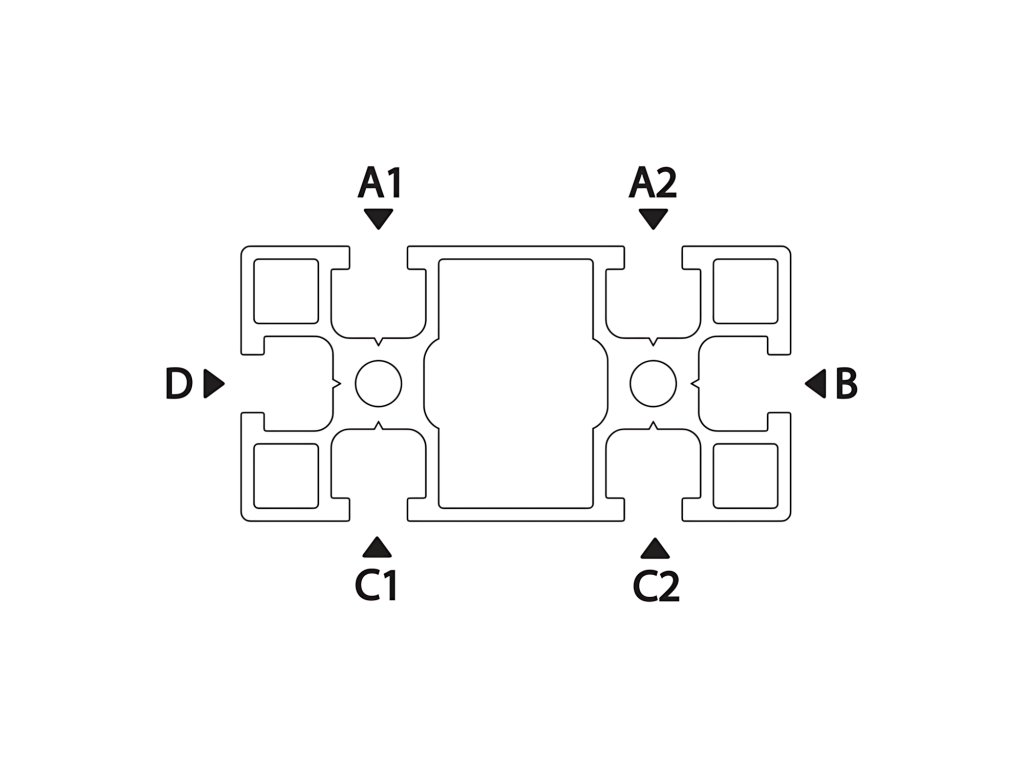 Univerzální možnosti připojení díky 6 drážkám na všech stranách profilu.