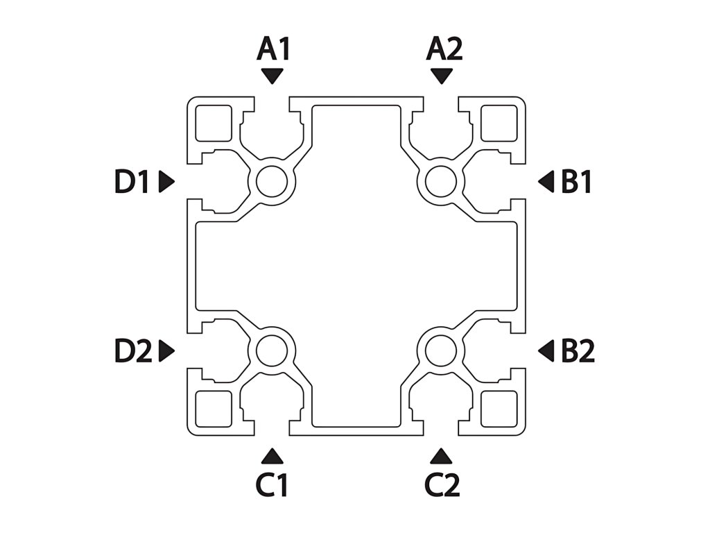 Připojení díky 8 drážkám na všech stranách profilu.