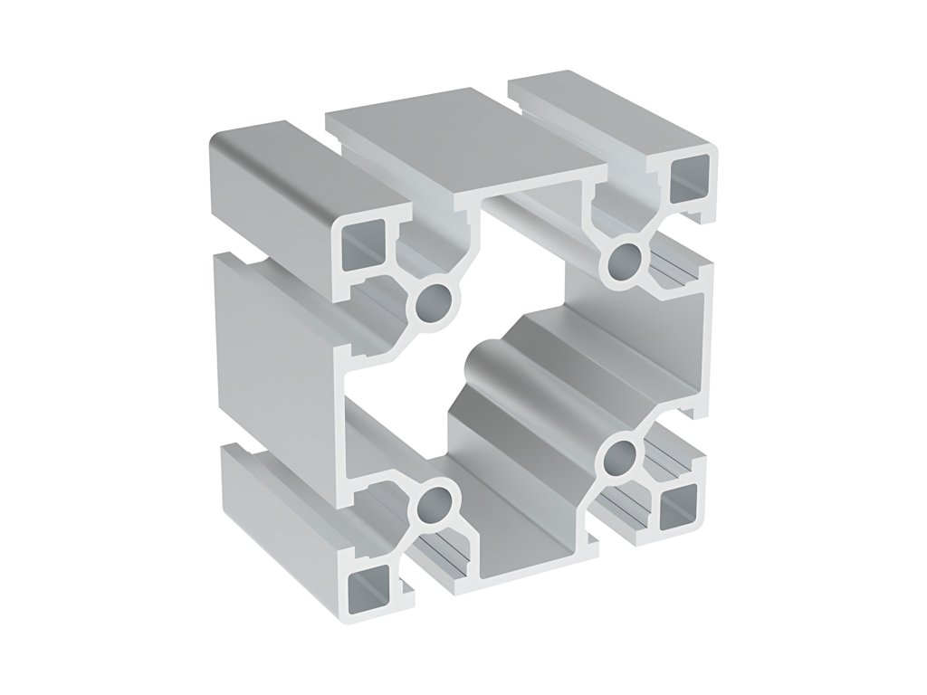 Hliníkový profil se čtvercovým řezem určený pro vytváření běžných struktur s potřebou vysokého zatížení ve všech směrech.