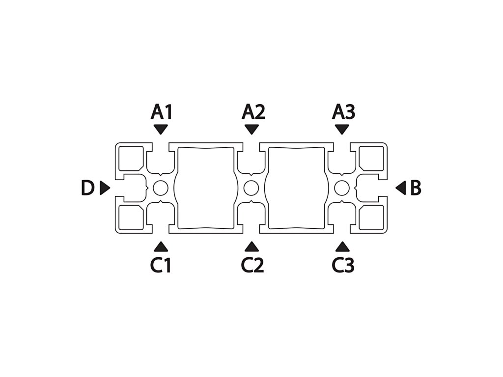 Univerzální možnosti připojení díky 8 drážkám na všech stranách profilu.
