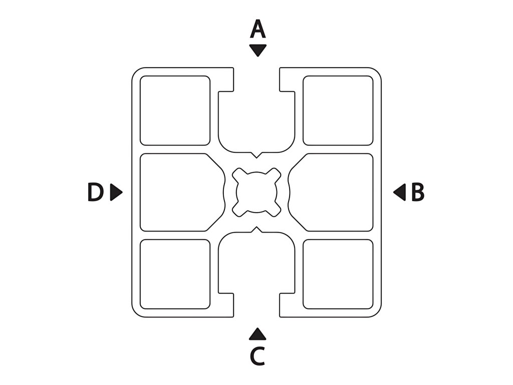 Hliníkový profil se čtvercovým řezem určený pro vytváření běžných struktur.