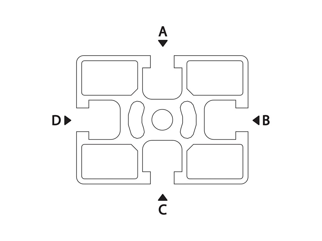 Univerzální možnosti připojení díky 4 drážkám na všech stranách profilu.