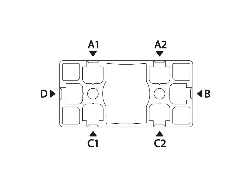 Na všech uzavřených stranách je dále možnost vyseknout celkem 6 drážek.