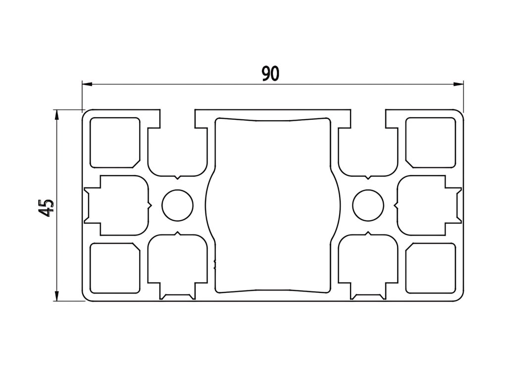 Hliníkový profil AC 45-8, 45x90, se 2 drážkami, těžký