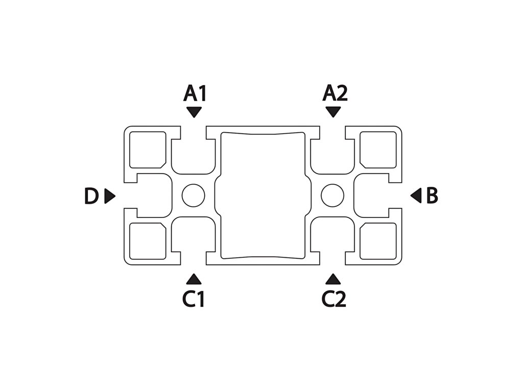 Univerzální možnosti připojení díky 6 drážkám na všech stranách profilu.