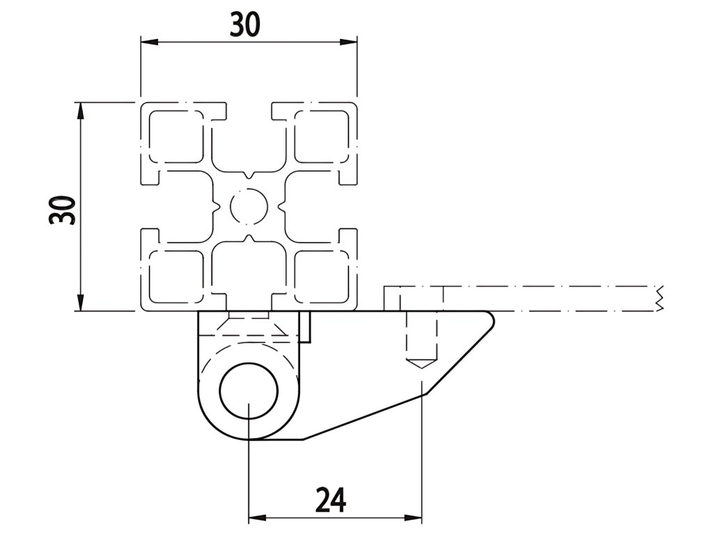 Připevnění k profilu pomocí šroubů M5 s válcovou hlavou.
