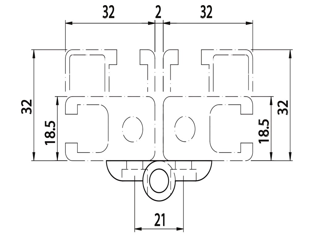Vhodný především pro spojení 2 profilů AC 45-8 s řezy o šířkách 32/32 mm.