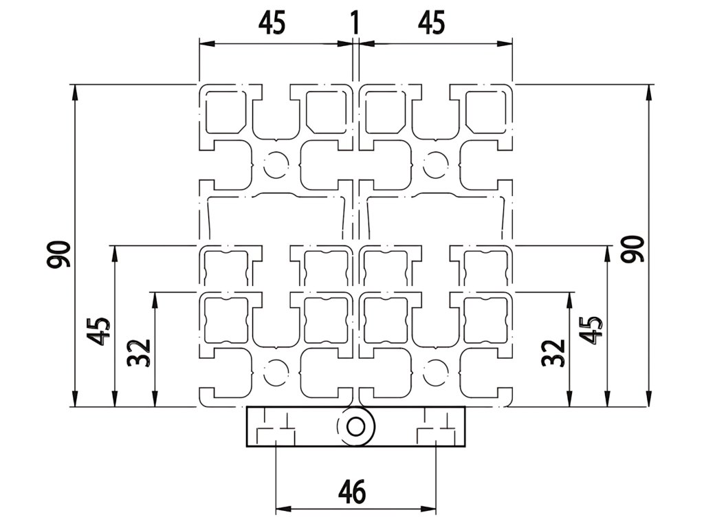 Vhodný především pro spojení 2 profilů s řezy o šířkách 45/45 mm.