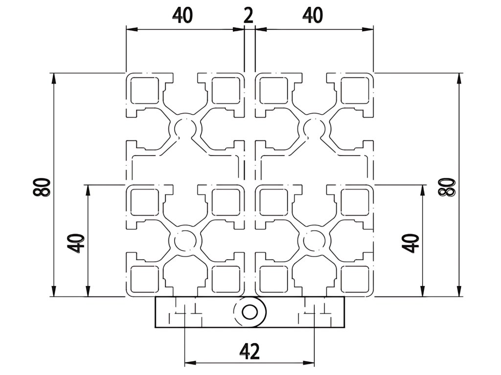 Vhodný především pro spojení 2 profilů s řezy o šířkách 40/40 mm.
