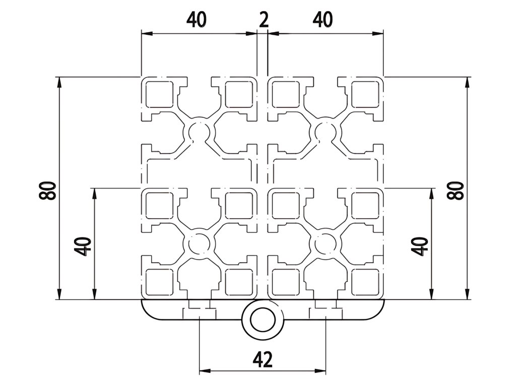 Vhodný především pro spojení 2 profilů s řezy o šířkách 40/40 mm.