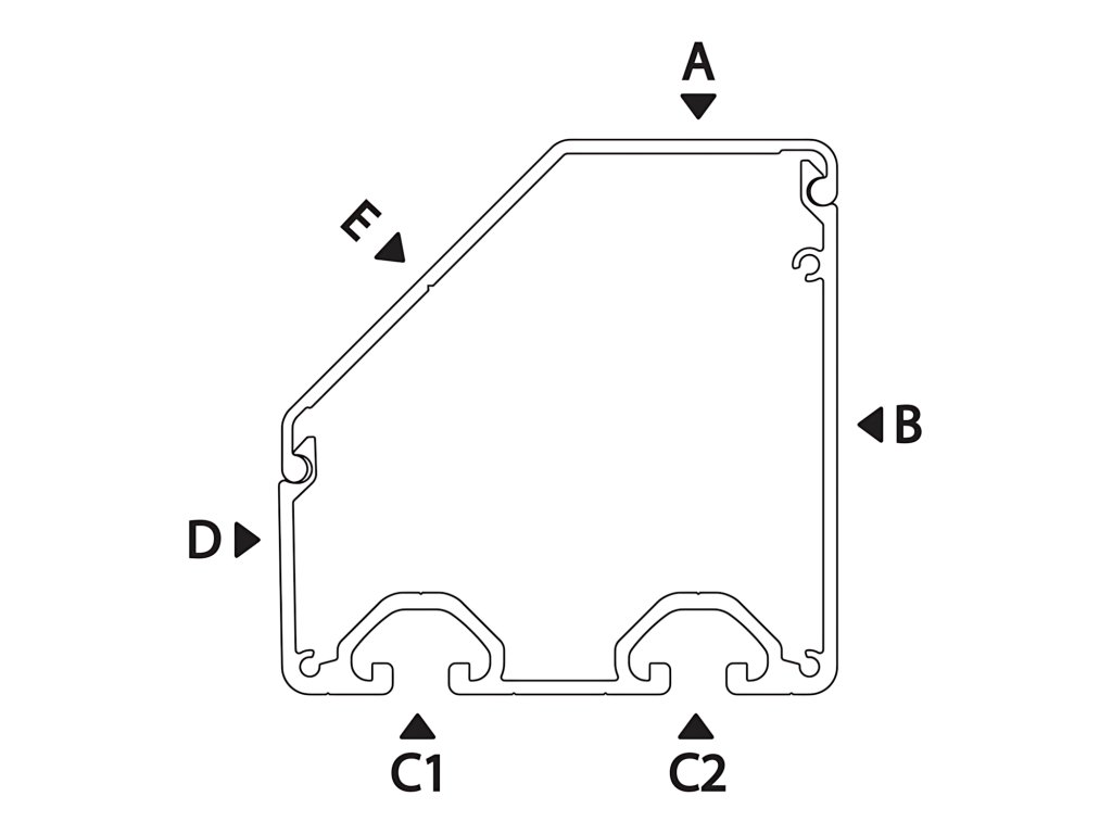 Kanálový profil 80x80 zkosený, s drážkami IM 40-8