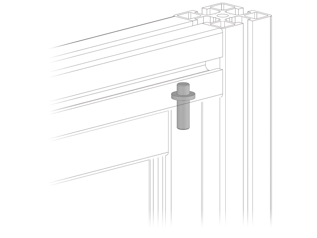 Čep pro zajištění kluzného pohybu skládacích dvířek v drážce profilu se šířkou 8 mm.