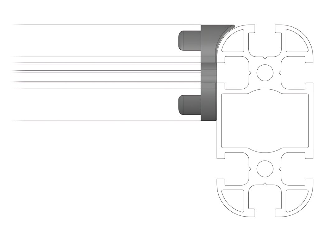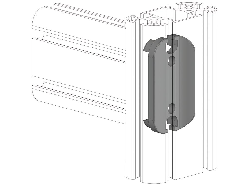 Spojka pro vytváření kolmých spojů mezi kulatými profily série AC 30-6 s řezy 30x30 a 30x60.