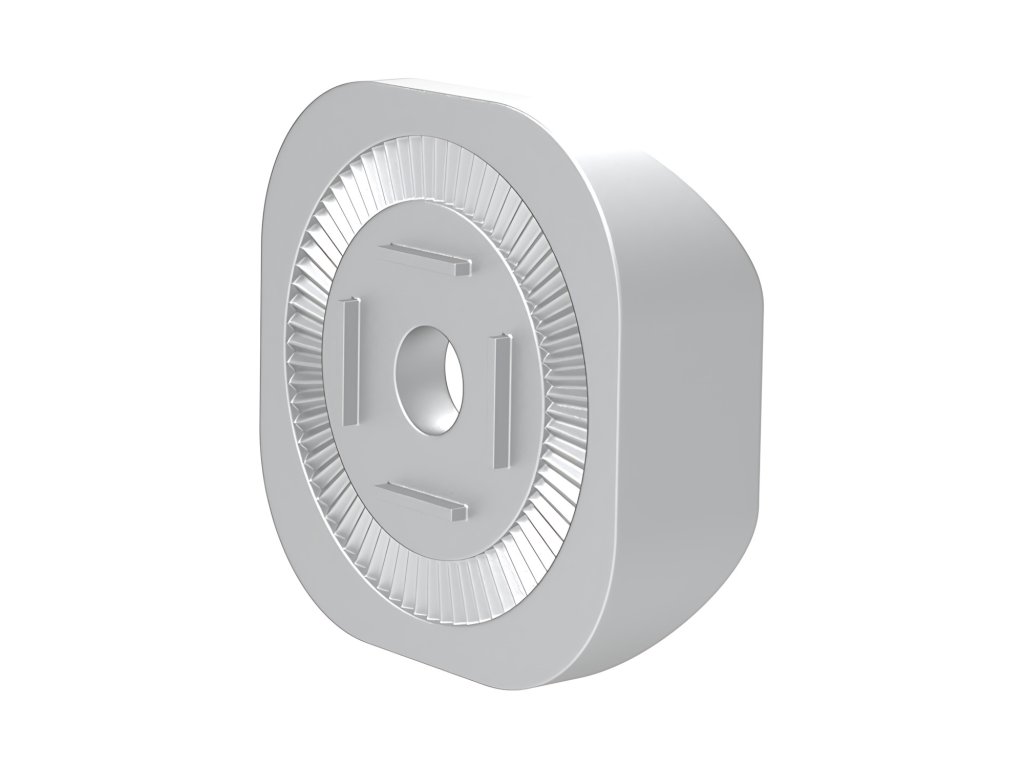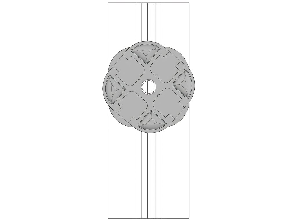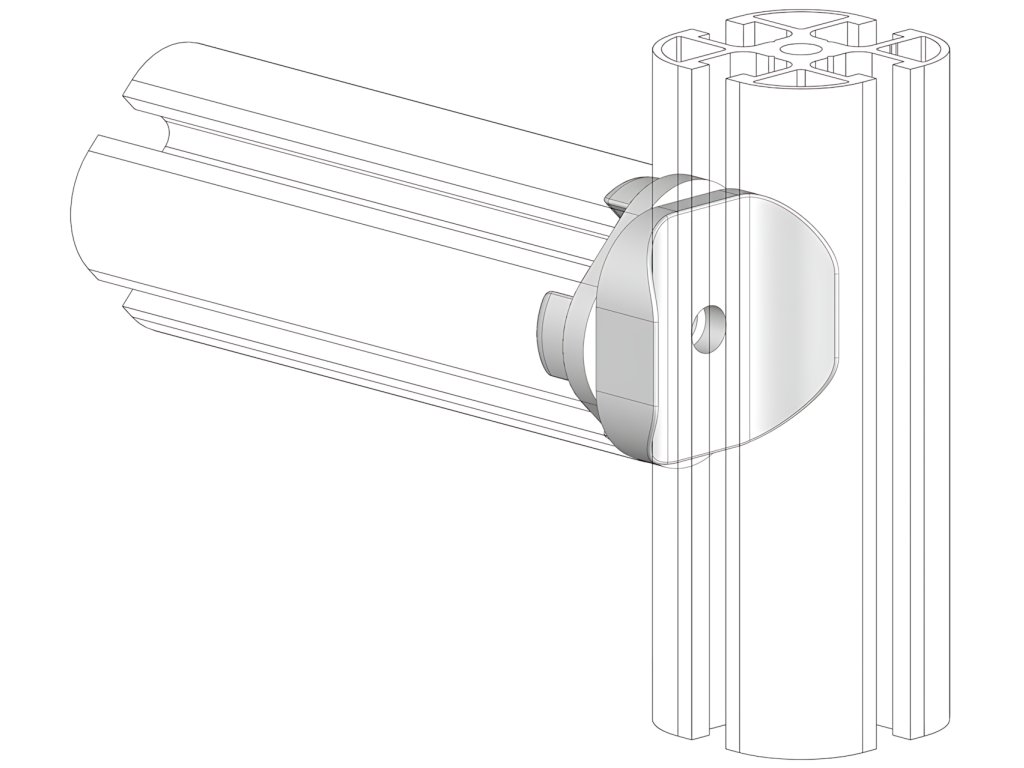 Spojka pro vytváření kolmých spojů kulatých profilů série AC 45-8 s řezem 45x45 ve 2 osách s možností osového odklonu o 45°.