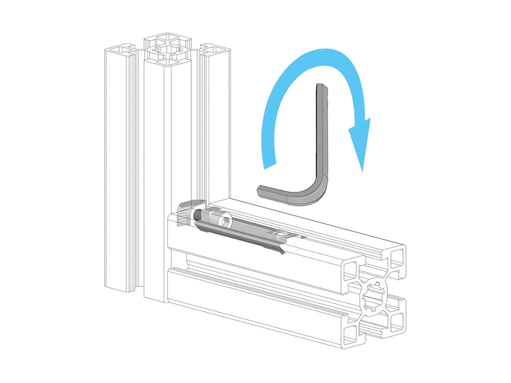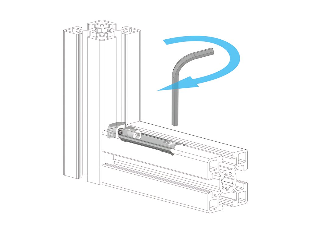Spojka do drážky pro spojení profilů sérií BH 40-10, BH 45-10 a BH 50-10 pod úhlem 90°.