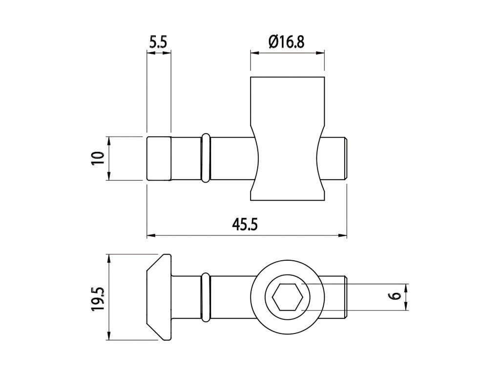 Spojovací západka s horizontální orientací umožňuje vytvořit kolmé spojení profilů sérií BH 40-10, BH 45-10 a BH 50-10.
